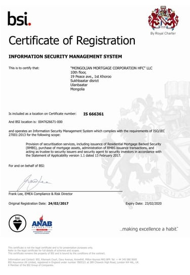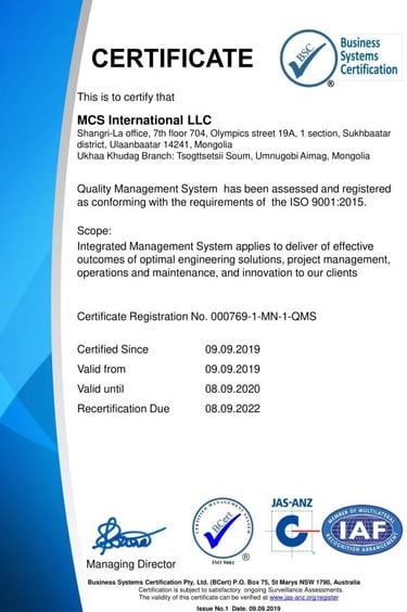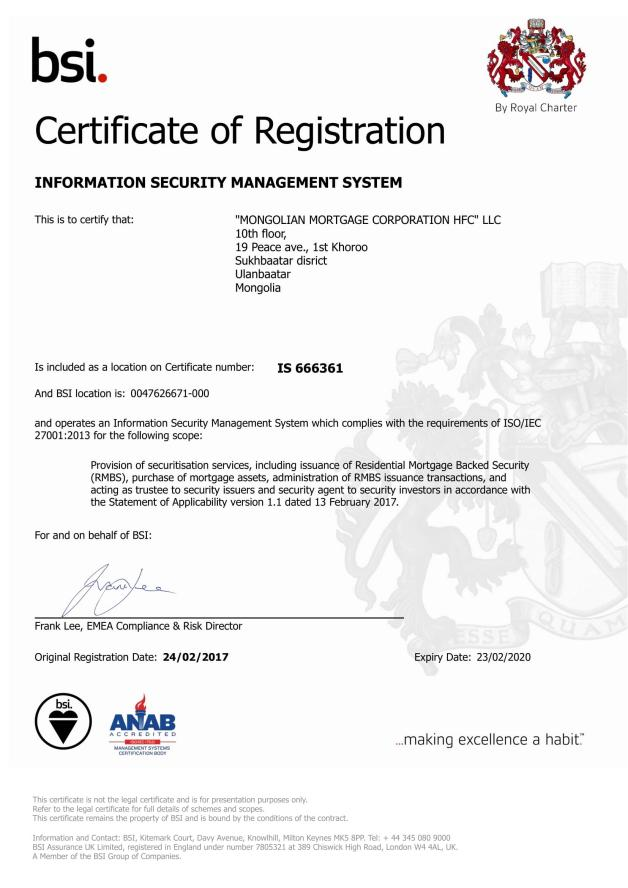 MMC компанид олгосон BSI-ийн гэрчилгээ.