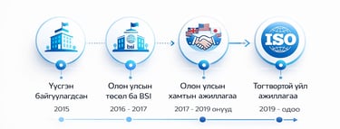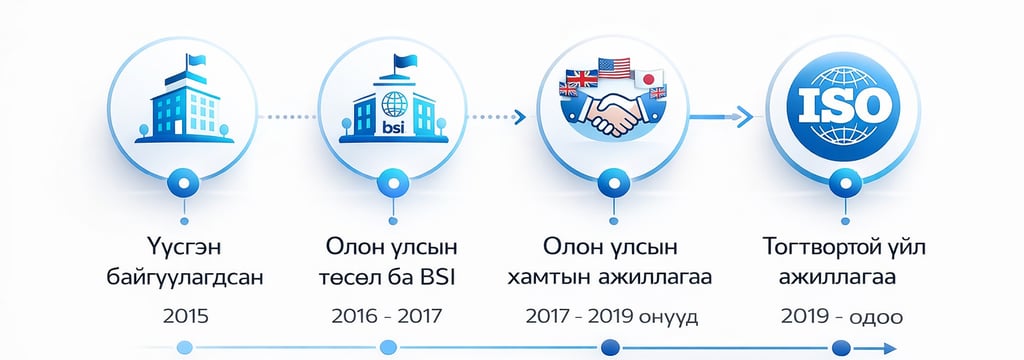 2015 оноос Британийн Стандартын байгууллага (BSI, www.bsigroup.com), Business Systems Certification (BSC, www.bscertification.com) зэрэг хэд хэдэн олон улсын нэр хүндтэй баталгаажилтын байгууллагуудыг Монголд төлөөлөн ажиллаж байна.